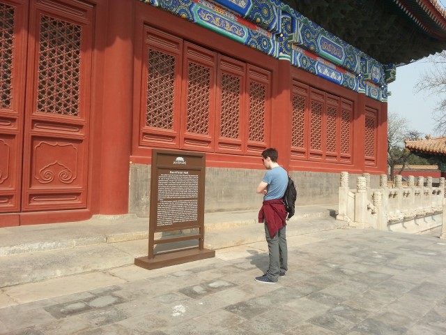 We went the wrong way into the Forbidden City. We walked for miles down a big street that a lot of hand waving by well-meaning locals had indicated but we couldn't actually see the city or the square. Eventually we thought we'll just take this side street lots of other people seem to be using and went in some sort of workman's entrance. We observed the entirely-Chinese map for a few minutes then purposefully marched forwards to absorb the culture. The architecture is impressive and the whole place is nice but it didn't leave much of an impression on me. There was a museum you had to pay extra for (nothing seems to cost more than a few euro) but it was full of chairs and dusty stacked items with no explanations. Dan still found the only English placard to read.