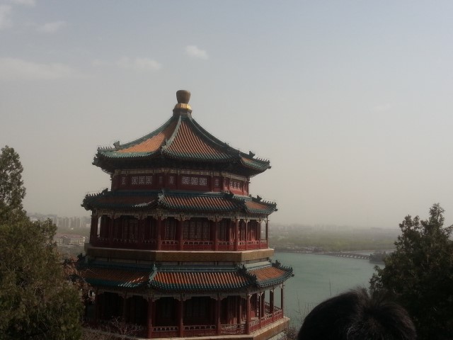 Summer Palace is a big traditional Chinese palace about half an hour by Metro outside the city centre. It's beautiful. We luckily arrived early, as we always do, before the swarms. It's more a park with palace bits everywhere than an actual palace, which is nicer than a palace anyway because there's a limit to how much palace you want to see. So it's mostly outdoors. The colourful temples stack up the hillside, and if you don't realise there's an easy path (us) you climb up to visit them all. My favourite part was near the start. It was like a little village on the river. You would never see a walkway with a sheer drop into deep water in Ireland. We'd have a nice sturdy railing and a cautionary sign, if we even opened it to the public. The Chinese are a little less safety conscious but I bet no one has ever fallen in. The village was a bit tainted by the fact that all the shops were filled with tourist tat.