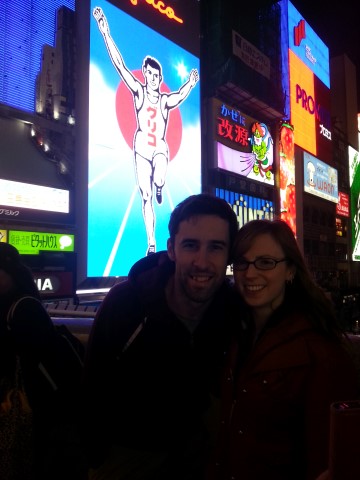 We got off the plane to Osaka at about midnight and joined an hour-long queue of absolute mayhem for passport control. We realised there were going to be no more trains and were filled with immense sadness at paying immense cash for a taxi to Osaka. But then joy. A bus in the distance. We ran, only to arrive at a closing door.