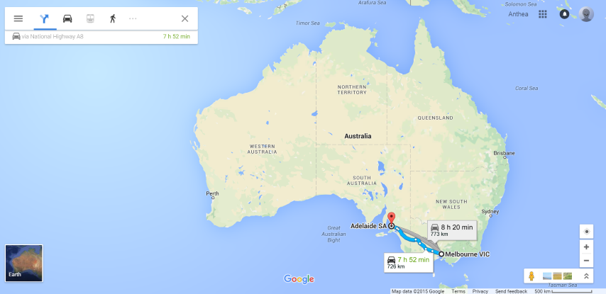 Due to some unfortunate circumstances, the friends in question (Myriam and Robert) couldn't meet us in the airport after all. So this time, we embraced the Australian mindset and drove 8 hours to Adelaide, stopping in Stawell to visit them.