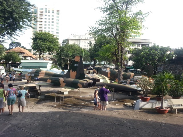 Our two days in Saigon were an inevitably grim history lesson in the Vietnam war (called the American war here). What would such a trip be without a visit to a war memorial museum? The War Remnants Museum is devastating as expected. There's a floor dedicated to war photographers so you can imagine how harrowing that was. They overdid the anti-American sentiment though. The whole thing was horrific enough. There was no need to add blatant anti-American bias everywhere. It detracted from the integrity a bit. Outside you could buy novelty Viet Cong soldier hats. I saw a large white tourist wearing one later that day. I despair.
