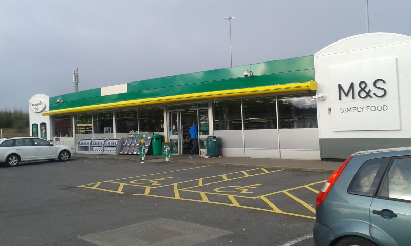 Not a lot of garages on the way. Unless they're secret hidden garages. We eventually found one about 20 minutes past Glasgow and it was an Marks and Spencer service station. An M&S service station! The fanciest garage sandwiches you'll ever buy.