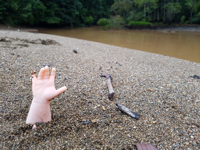 Since we'd already paid, we sadly waded back out to the boat and spent a torturous 40 minutes gripping the edge and staring intently at the horizon. At some points the boat was almost vertical. When we arrived, a river had formed blocking the way into the jungle. No worries, it's only thigh-high right now so we can wade through. After about twenty minutes of walking, our guide admitted that the tour would be better if the rain wasn't so heavy. At this point we were walking through a newly formed lake, unable to see our hands in front of our faces. Did you know you can get cold in Costa Rica? I know you can get cold in Costa Rica. So we headed back. The river was now about waist-high. We hung around the park ranger's shelter for a bit, the guide saying we could wait and see if it clears up then try again. But the other couple said no, let's go now. I said, could we not just wait half an hour? The guide said no, they want to go. So off they went, leaving me, Dan and one other lady alone on the beach for two hours. Of course about half an hour after they left, the weather started to pick up. But we couldn't do anything because we now had no guide.