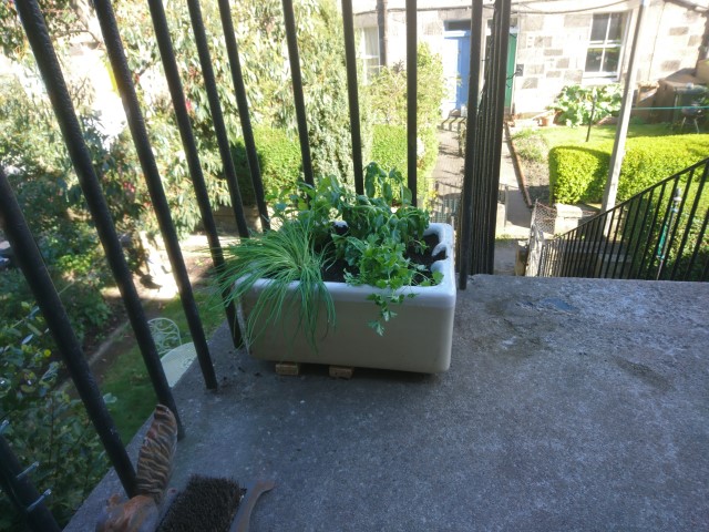 Anyway, then lockdown started and my mum kept sending me gloating pictures of her amazing herb garden and demanding I use the Belfast sink they hauled over on the ferry last year. There weren't many herbs available and coriander is disgusting, so I got mint, chives, basil and parsley.